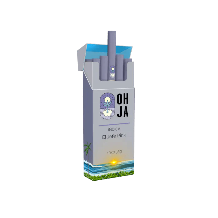 OHJA El Jefe Pink is an indica strain created through a three-way cross of the heavy-hitting Face Off OG, SFV OG and Pink Kush. With parents like these, you know El Jefe isn't going to take it easy on you. This bud has a dominating flavour of sweet citrus and kush. The aroma is of sweet lemon and pine with a fragrant floral overtone that's almost candy-like. El Jefe Pink buds have tight round forest green nugs with long thin orange hairs and a coating of light amber trichomes.